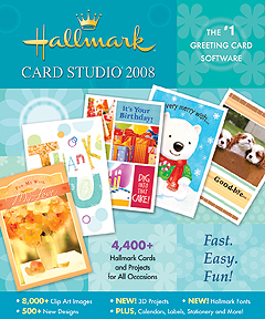 Hallmark® Card Studio® 2008 is the fast, fun & easy way to create customizable Hallmark® cards! You can even place digital photos directly into your cards! You’ll get 4,400+ Hallmark® cards & projects (including 500 NEW ones!), 8,000+ premium art images, plus an Event Planner to remind you of important dates.